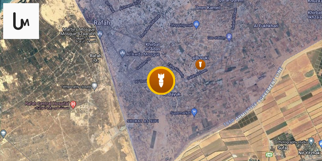 Israeli airstrike behind the yellow line east of Khan Younis city
