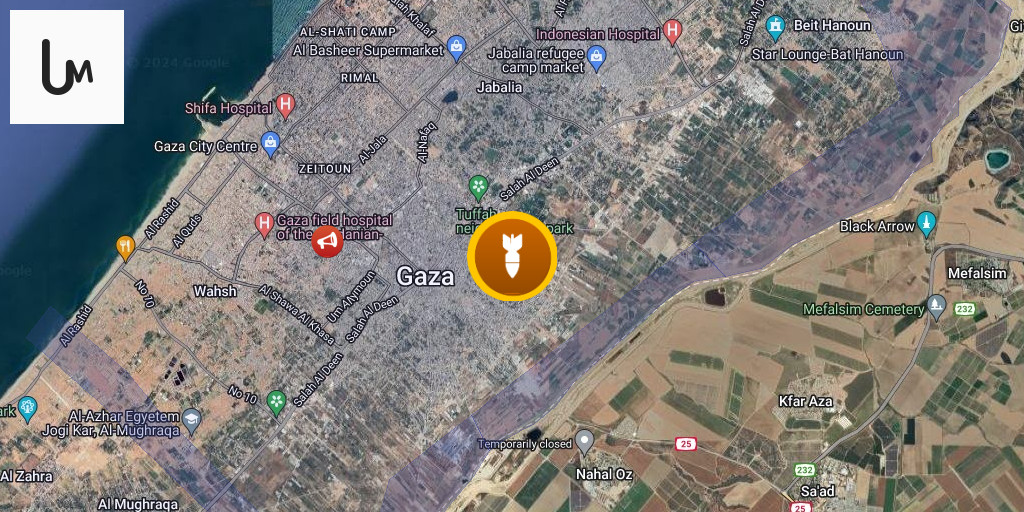 An airstrike by warplanes east of the Tuffah neighborhood, east of Gaza City.