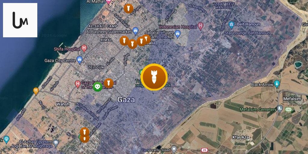 Airstrikes target the Al-Karama area, northwest of Gaza City.