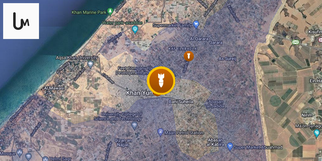 Israeli aviation launches a raid on the Al-Satar Al-Sharqi area, northeast of Khan Yunis, in the southern Gaza Strip.
