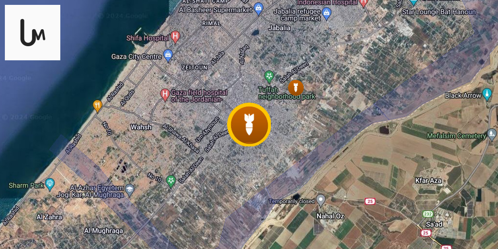 Explosions in the Tuffah neighborhood of Gaza City.