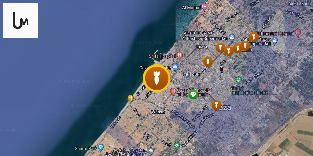 An Israeli airstrike destroyed a residential building on Omar al-Mukhtar Street, east of Gaza City.