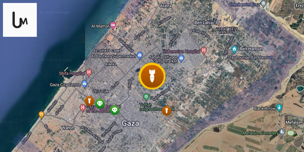 An airstrike targeted the vicinity of the Omari Mosque in Jabalia, north of Gaza.