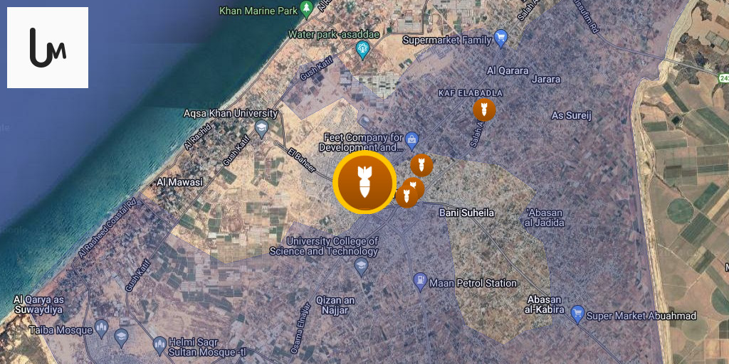 Launches an airstrike in central Khan Yunis, south of the Gaza Strip