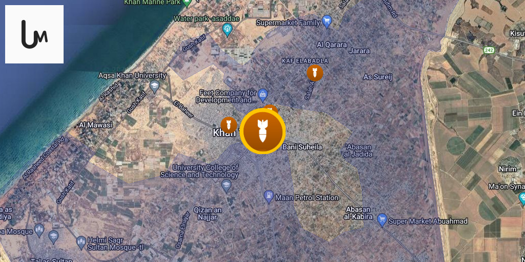 Launches an airstrike in central Khan Yunis, south of the Gaza Strip