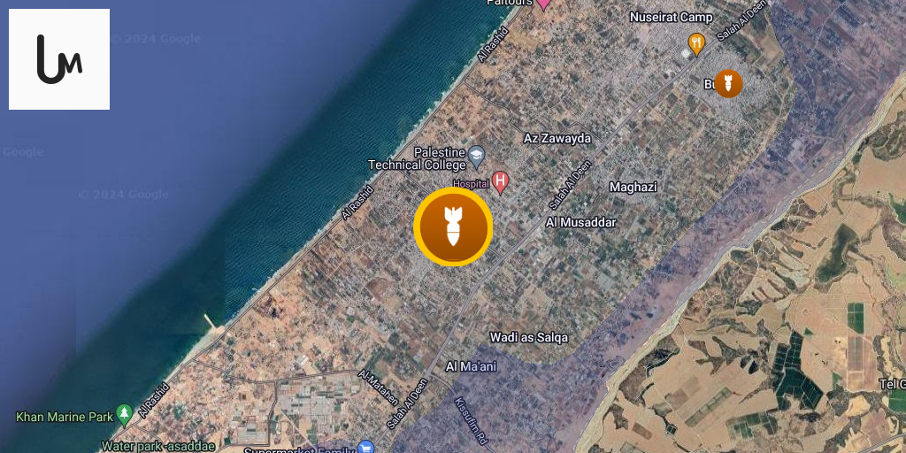 Israeli airstrike targeting a group of people south of Al-Bureij camp in the Gaza Strip.