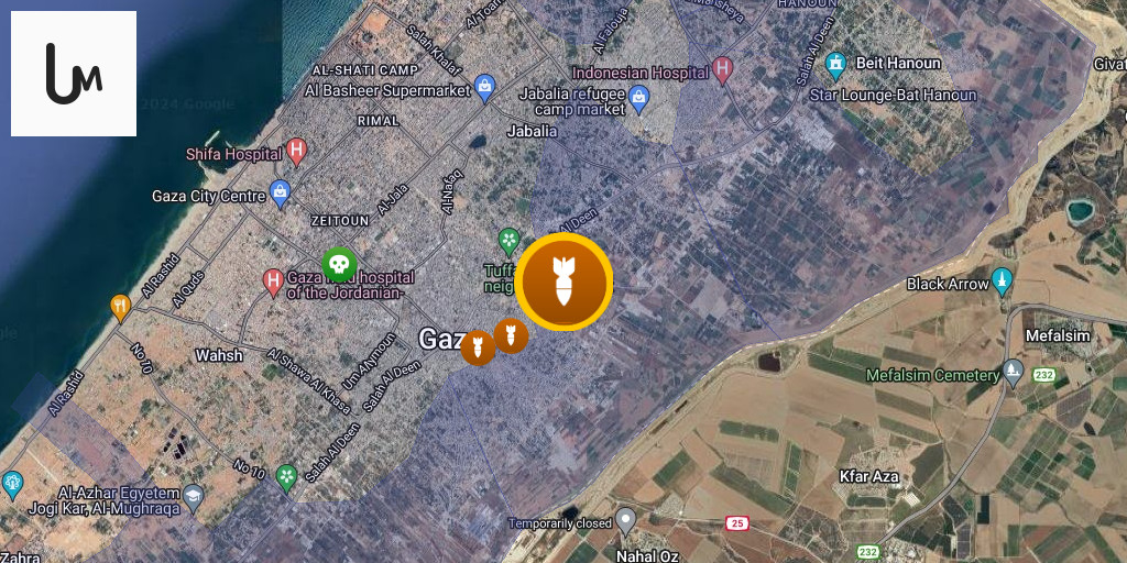 Airstrikes hit the Al-Tuffah neighborhood, northeast of Gaza City.
