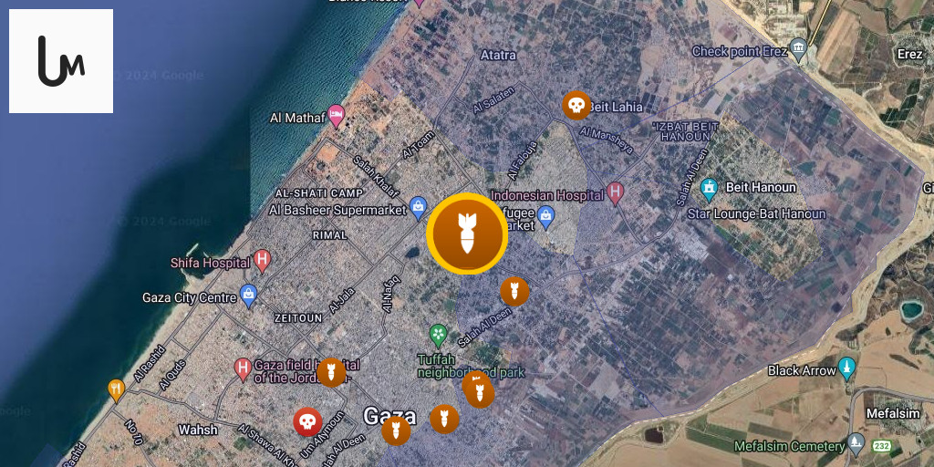 An airstrike targeted the vicinity of the Omari Mosque in Jabalia, north of Gaza.