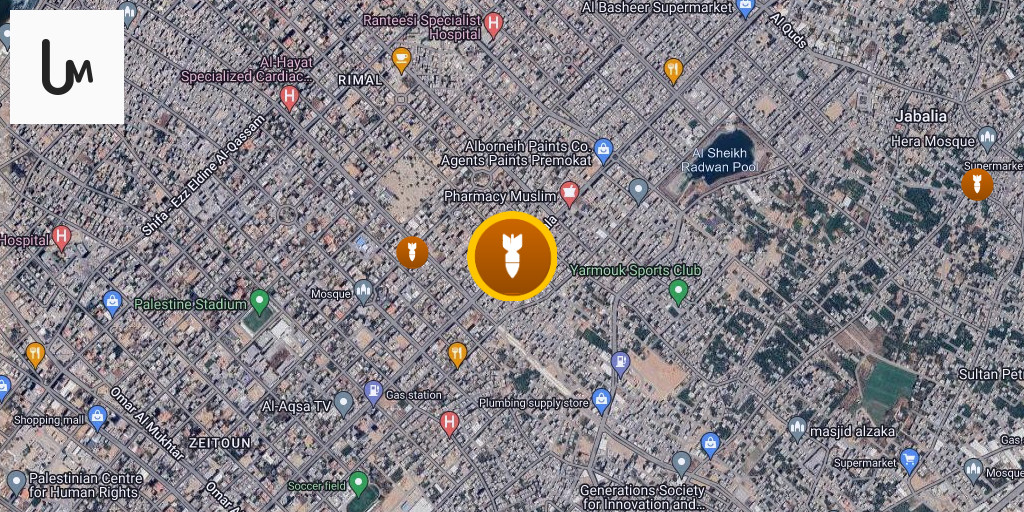 Violent Israeli shelling and airstrikes on the Shuja'iyya neighborhood, east of Gaza City.