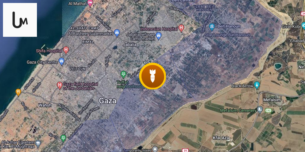 An airstrike is being carried out east of the Shuja'iyya neighborhood in Gaza City.