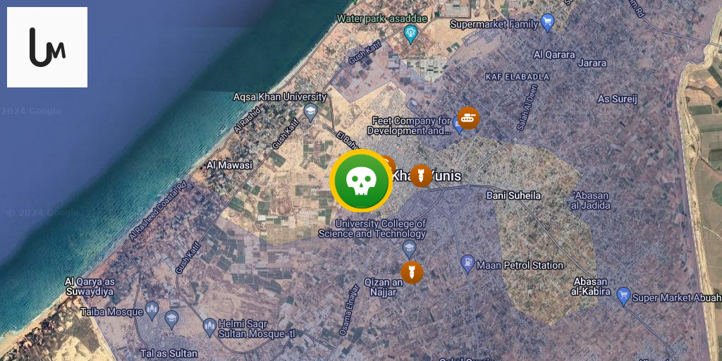 Aircraft launch a raid on Al-Mawasi, west of Khan Yunis.