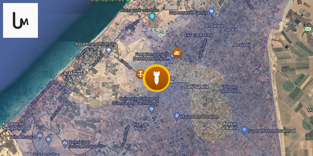 Aircraft launch a raid on Al-Mawasi, west of Khan Yunis.