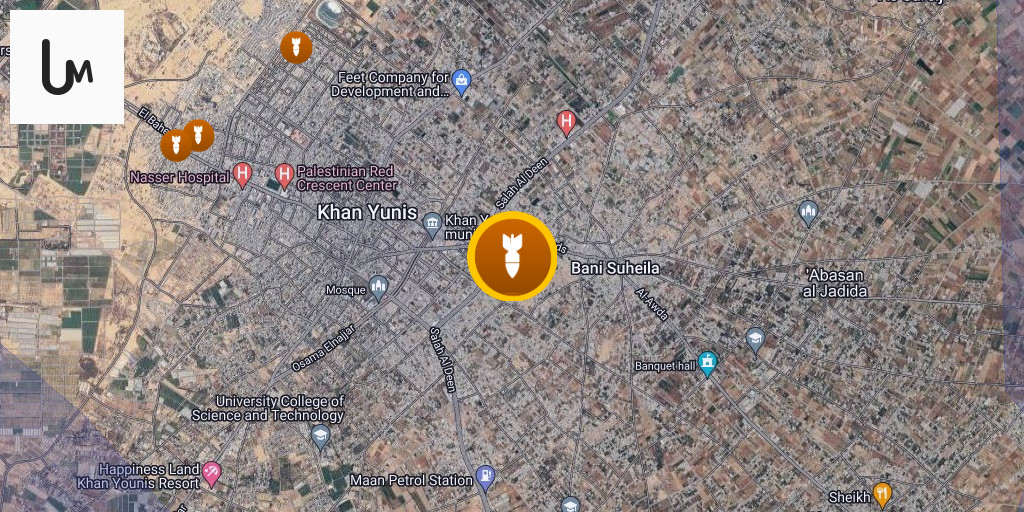 Airstrikes hit the Al-Katiba area north of Khan Yunis, in the southern Gaza Strip.