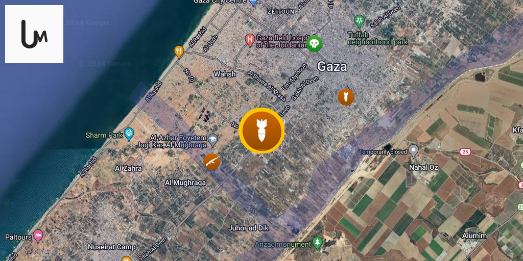 Airstrikes target the vicinity of Al-Quds Open University in the Al-Nasr neighborhood, west of Gaza City.