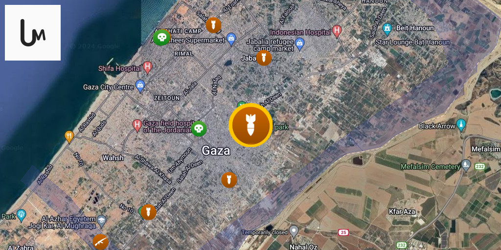 Airstrikes target the vicinity of Al-Quds Open University in the Al-Nasr neighborhood, west of Gaza City.
