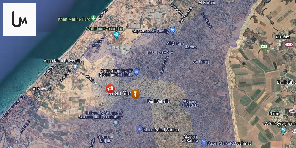 Aircraft launch a raid on the center of Khan Yunis, south of the Gaza Strip.