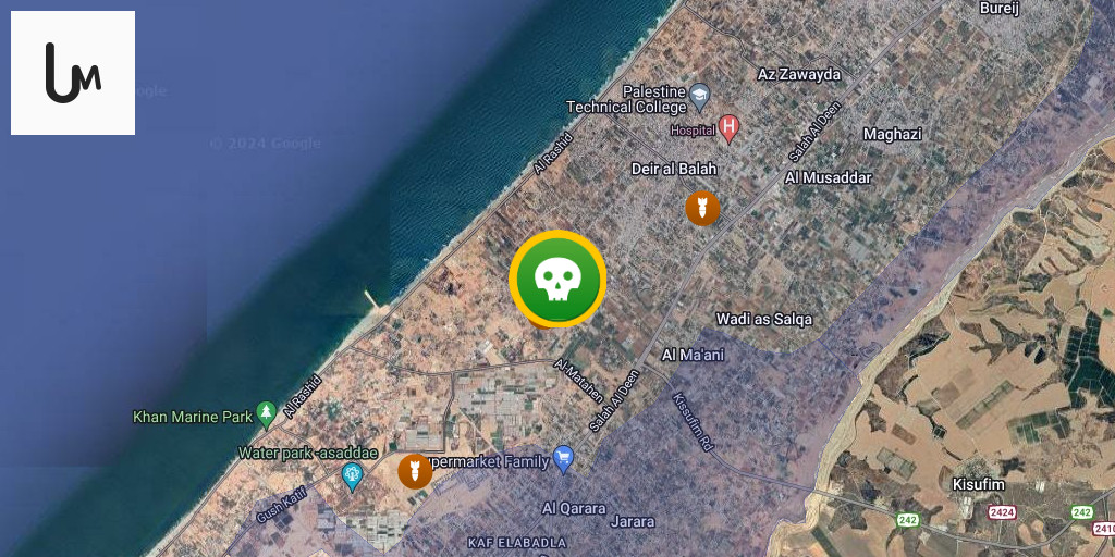 A medical source at Al-Aqsa Martyrs Hospital: Two dead and a number of wounded in an Israeli airstrike in the center of Deir al-Balah, central Gaza Strip.