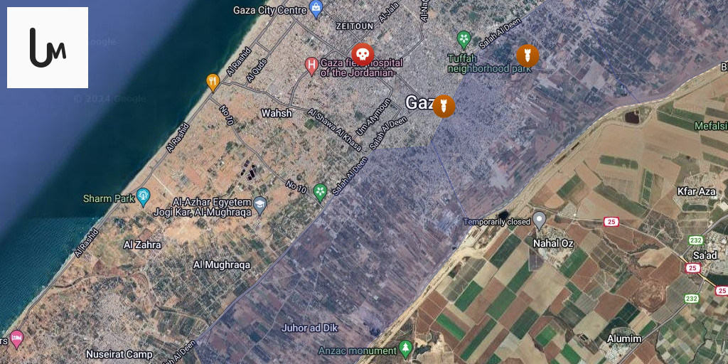 Israeli airstrike east of Zeitoun neighborhood, southeast of Gaza City