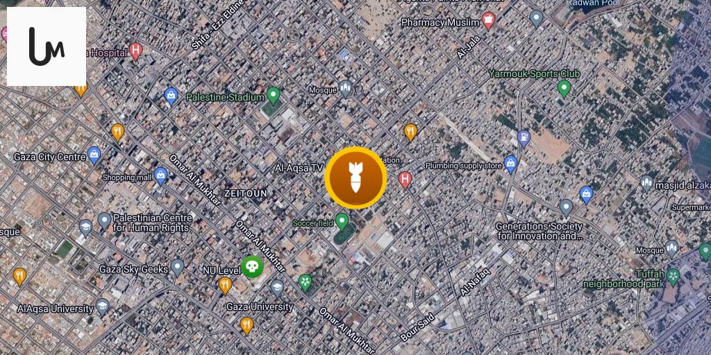 An airstrike targeted a house near the Candle Mosque in the Zeitoun neighborhood, southeast of Gaza City.