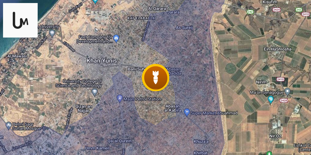 Aircraft launch airstrikes on the eastern areas of Khan Yunis city in the southern Gaza Strip