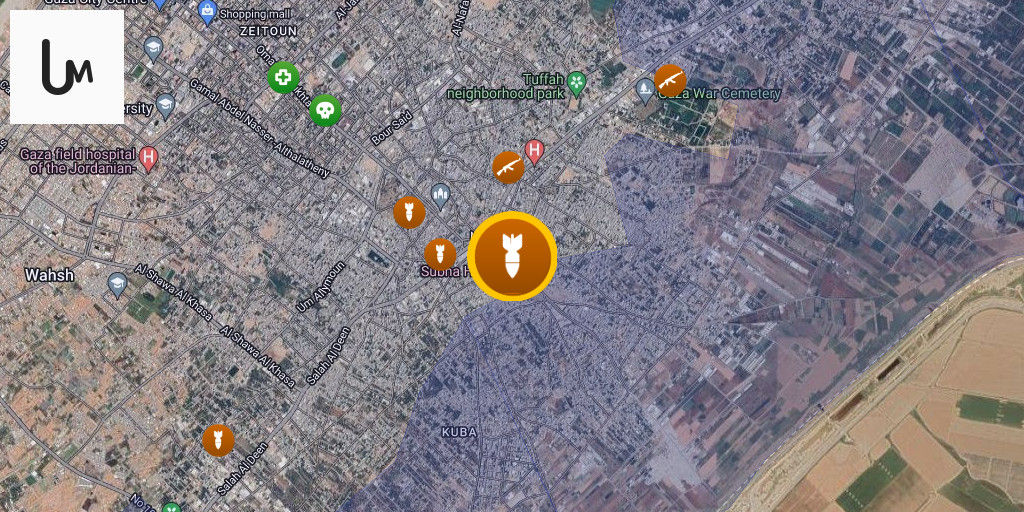 Aircraft launch a series of raids on Jabalia al-Balad and al-Tuffah neighborhood.