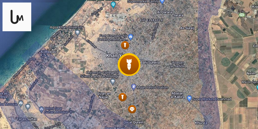 An airstrike targeted the center of Khan Yunis, south of the Gaza Strip.