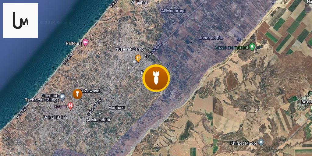 Warplanes launch an airstrike on agricultural land in the town of Al-Zawaida in the central Gaza Strip.