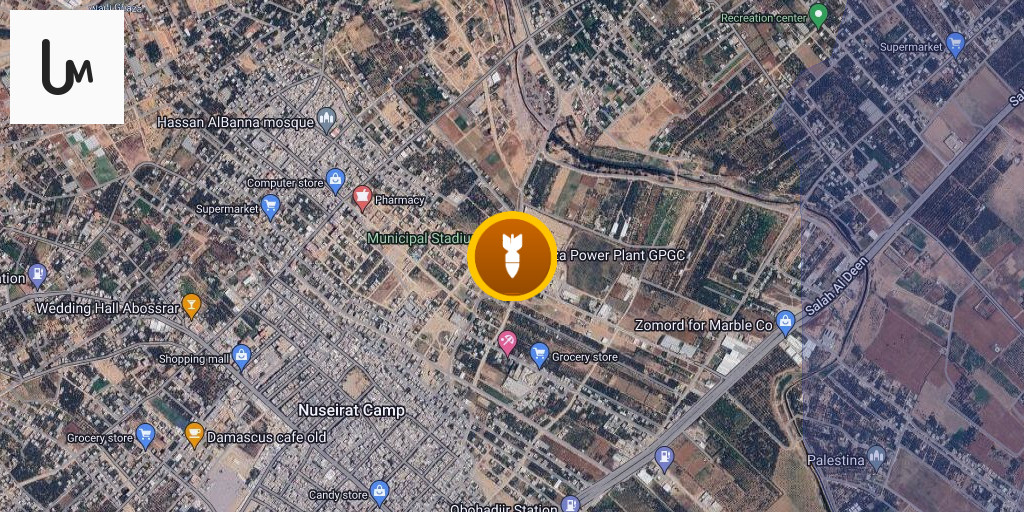 Airstrikes hit the entrance to the power station street, northeast of the Nuseirat camp, in the central Gaza Strip.