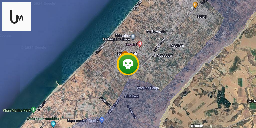 Two dead and a number of wounded after an airstrike targeted the vicinity of Al-Basheer Pharmacy in the Hakr Al-Jami' area in Deir Al-Balah, central Gaza Strip.