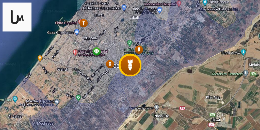 Two dead and a number of wounded after an airstrike targeted the vicinity of Al-Basheer Pharmacy in the Hakr Al-Jami' area in Deir Al-Balah, central Gaza Strip.