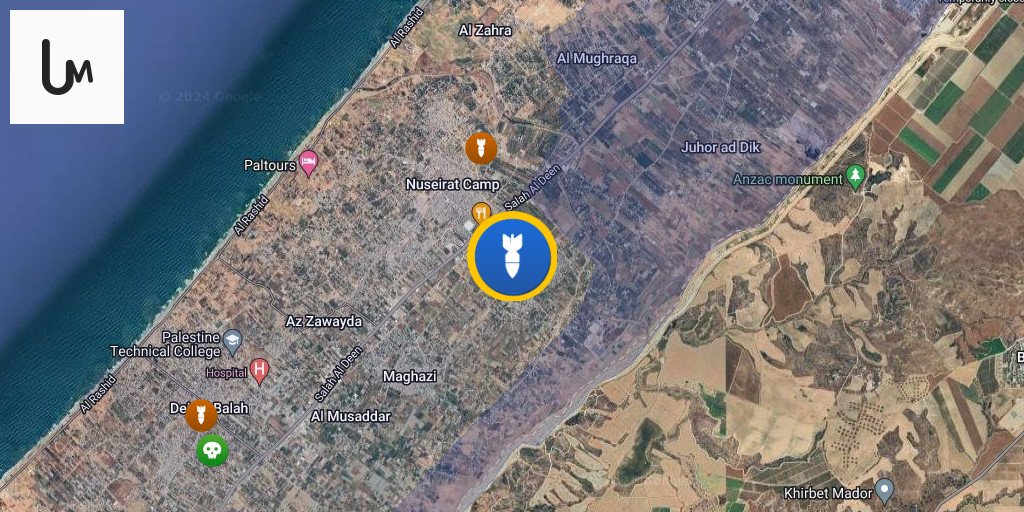 Two dead and a number of wounded after an airstrike targeted the vicinity of Al-Basheer Pharmacy in the Hakr Al-Jami' area in Deir Al-Balah, central Gaza Strip.