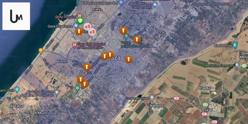 Israeli artillery shelling of the Shuja'iyya and Daraj neighborhoods east of Gaza City.