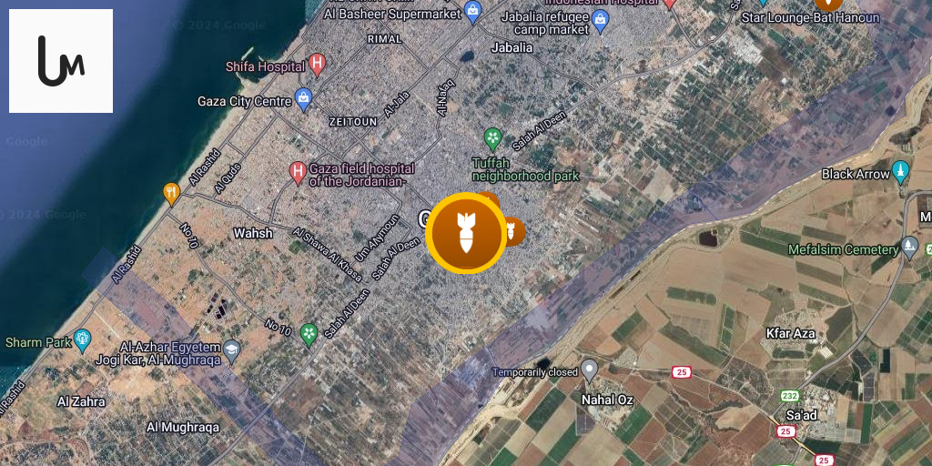 Airstrikes hit Mansoura Street in the Shuja'iyya neighborhood, east of Gaza City.