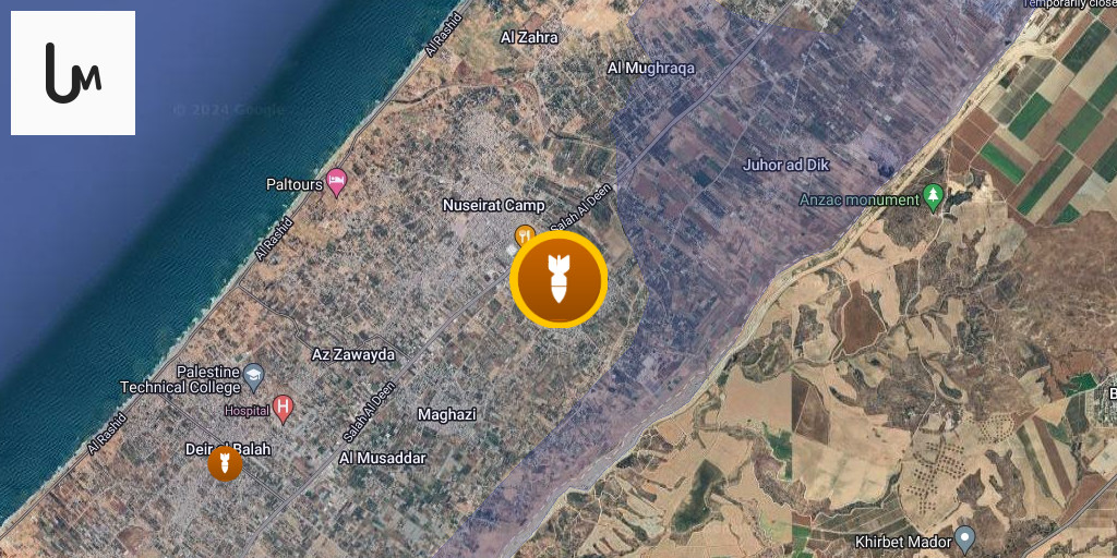 Ataques aéreos impactaron el Bloque 6 en el campamento de Al-Bureij, en el centro de la Franja de Gaza.