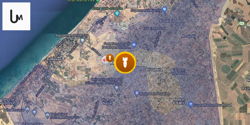 תקיפה אווירית כוונה לאזור מרכז חאן יונס, מדרום לרצועת עזה.